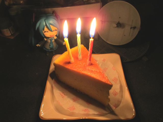 帰宅後すぐにチーズケーキ買いに行ってロウソクつけてもらいました。