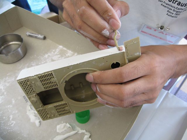 エポパテの伸ばしから貼り付け、コーティングに至るまで、師の介添えを