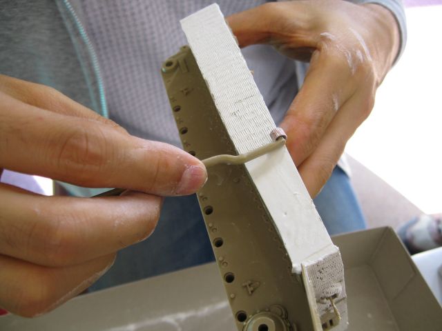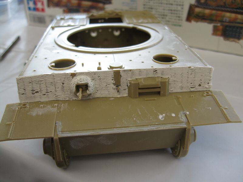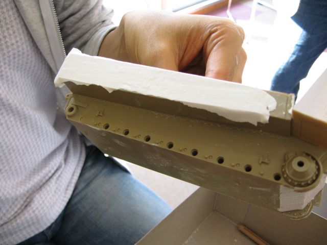 車体左側面に続き、まったく同じ方法で車体前面装甲にコーティング。