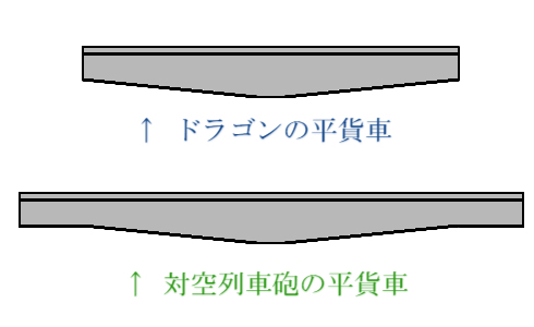 この図のように、ドラゴンの平貨車と対空列車砲の平貨車の側面部は、