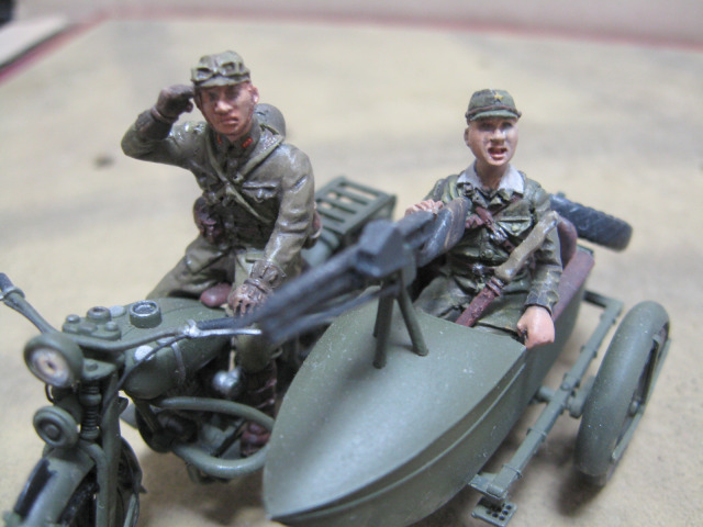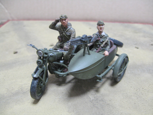 乗る『九七式側車付自動二輪車 陸王』の組み立て写真を