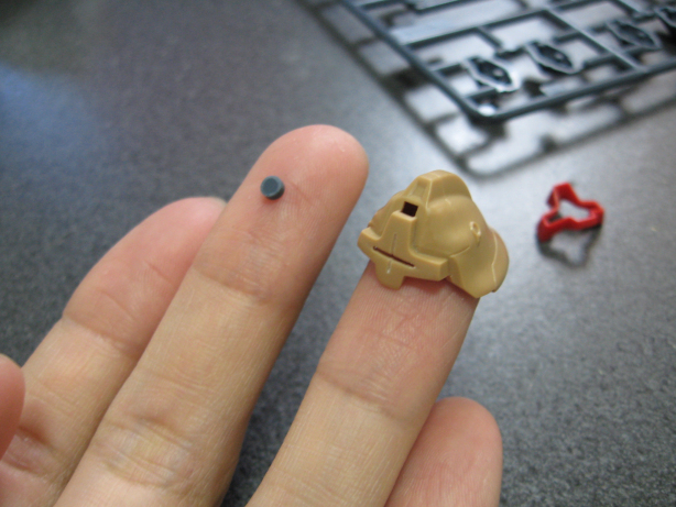 ヘッドパーツにスリットを入れ、適当なランナーから削り、○パーツを